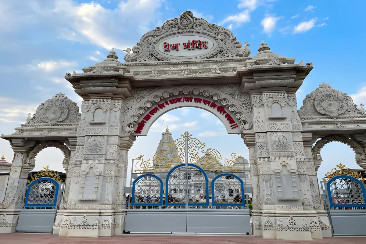 It begins with the magnificent Prem Mandir, a marble temple that is illuminated at night.
